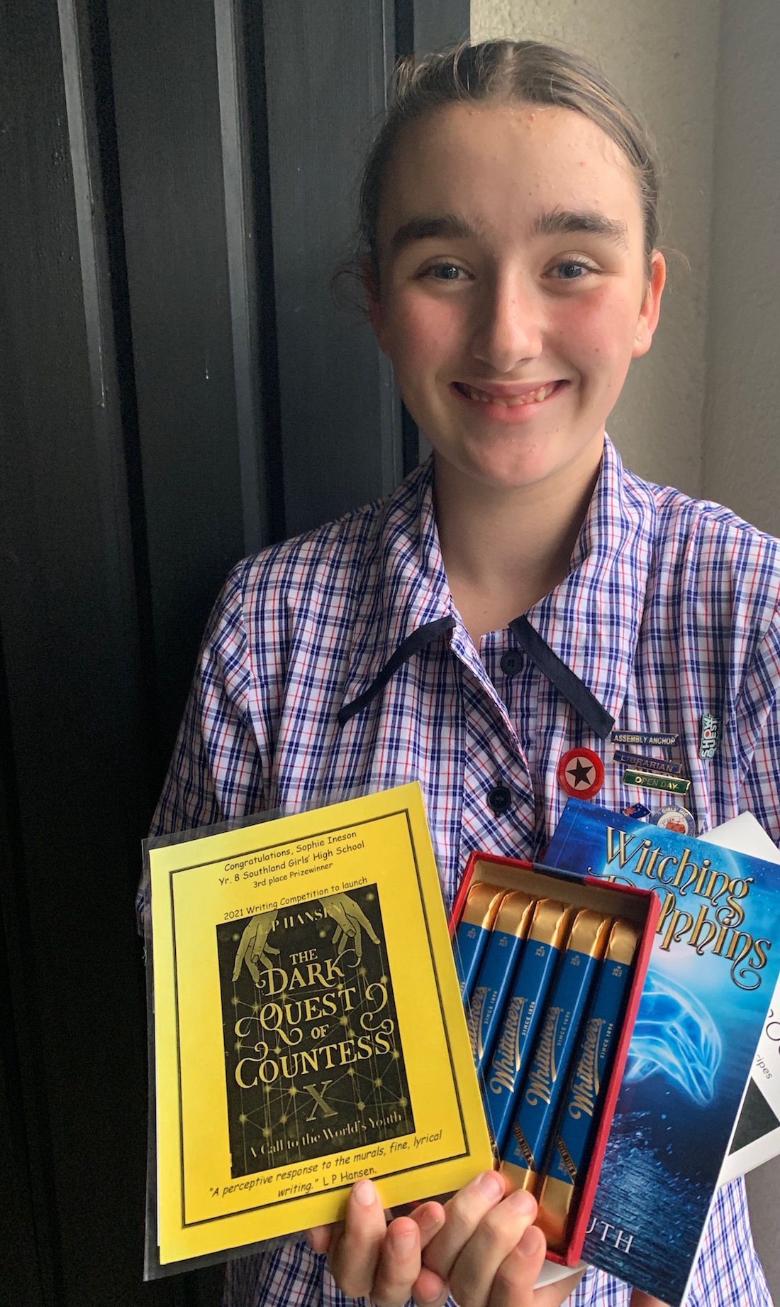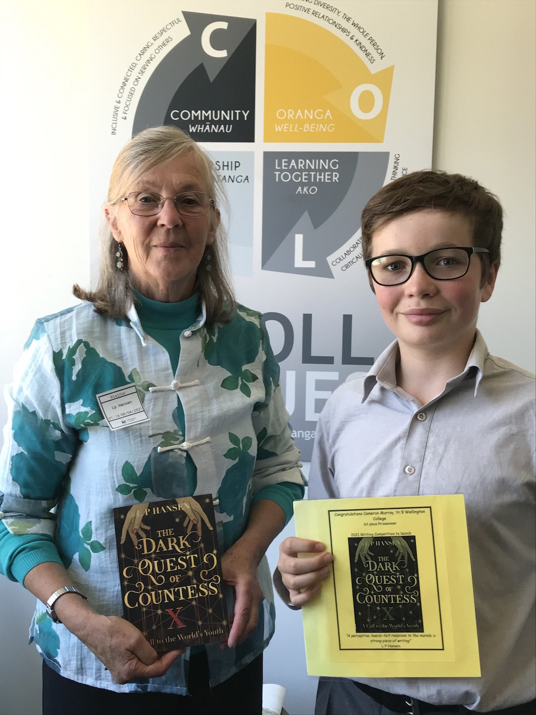 Between launches, I met with competition winners, 1st Cameron Murray of Wellington College and 2nd Evie Haughton of Pauatahanui School to present their gifts. Evie’s whole class joined in the celebration. Based on the questions they asked about writing, it seems there are many more potential authors in the class. Competition sponsors, Whittakers and The Body Shop, have both expressed their delight at the results. 3rd Prize went to Sophie Ineson of Southland Girls High School.